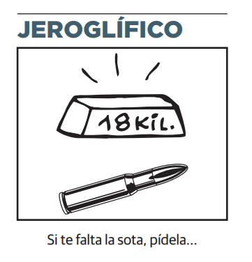 Jeroglífico de el correo del día 18/02/2022 Pulsa aquí para revelar la solución Solución: O RÓBALA Explicación: ORO BALA Comparte esto: Compartir en WhatsApp (Se abre en una ventana nueva) WhatsApp Compartir en X (Se abre en una ventana nueva) X Comparte en Facebook (Se abre en una ventana nueva) Facebook Enviar un enlace a un amigo por correo electrónico (Se abre en una ventana nueva) Correo electrónico Me gusta Cargando... Relacionado