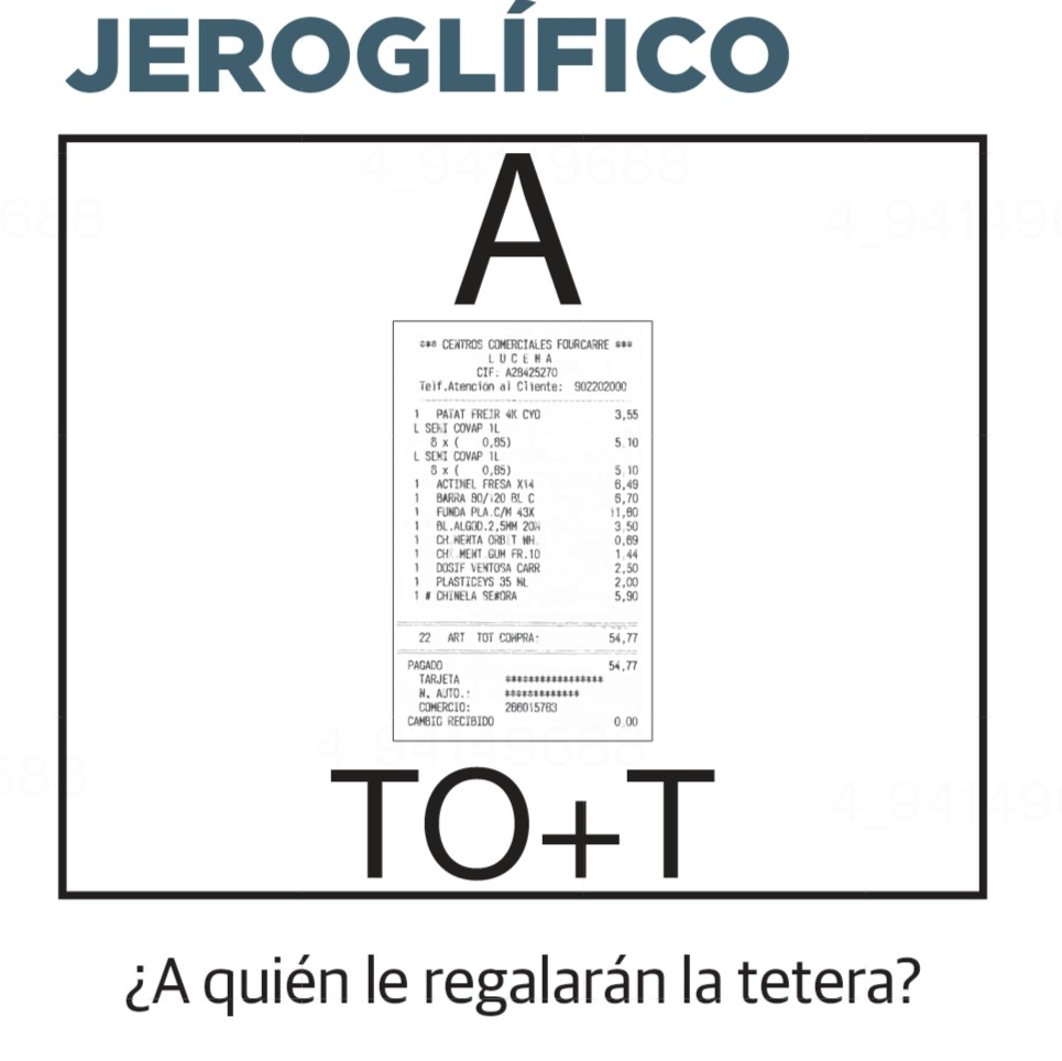 Jeroglífico de el correo del día 13/10/2022 Pulsa aquí para revelar la solución Solución: A TI QUE TOMAS TÉ Explicación: A TIQUE TO MÁS TE Comparte esto: Compartir en WhatsApp (Se abre en una ventana nueva) WhatsApp Compartir en X (Se abre en una ventana nueva) X Comparte en Facebook (Se abre en una ventana nueva) Facebook Enviar un enlace a un amigo por correo electrónico (Se abre en una ventana nueva) Correo electrónico Me gusta Cargando... Relacionado
